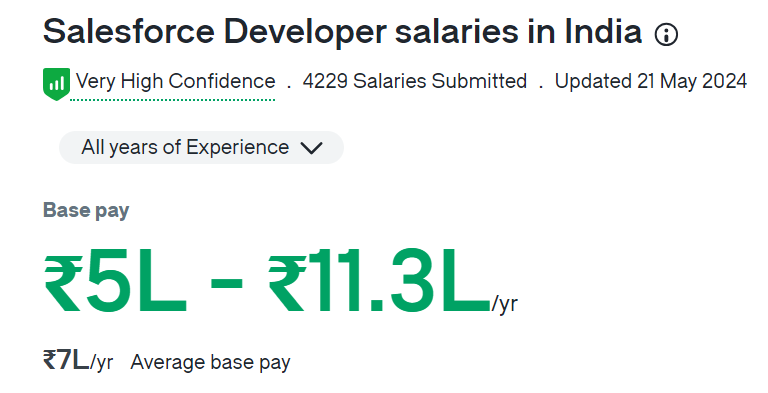 Average : ₹10,14,698 Range : ₹9,74,272 – ₹10,55,124 The common earnings for salesforce developer is ₹16,84,698 consistent with yr within the India. The average additional cash reimbursement for a salesforce developer inside the India is ₹10,14,698, with a variety from ₹9,74,272 – ₹10,55,124. Salaries estimates are based on 225 salaries submitted anonymously to Glassdoor by salesforce develoepr employees in pune.