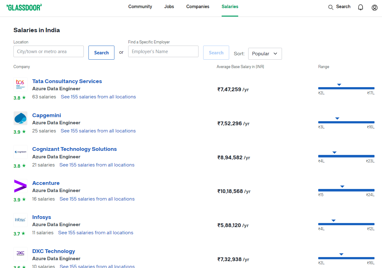 Average : ₹10,14,698 Range : ₹9,74,272 – ₹10,55,124 The average salary for Azure Data Engineer is ₹16,84,698 consistent with yr within India. The average additional cash reimbursement for an Azure Data Engineer inside India is ₹10,14,698, with a range of ₹9,74,272 – ₹10,55,124. Salaries estimates are based on 225 salaries submitted anonymously to Ambitionbox by Azure Data Engineer employees in,Pune